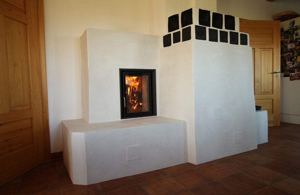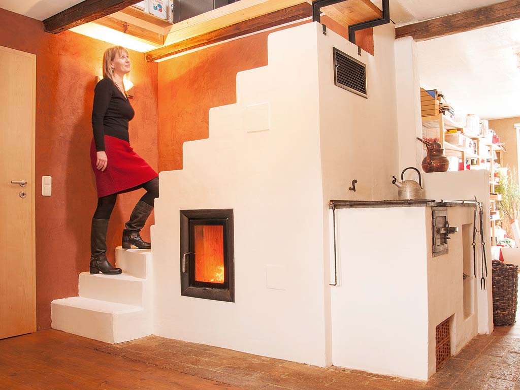 Zusätzlich geben die Heizgase des Ofens ihre Energie auf dem Weg zum Schornstein an keramische Züge ab. Somit erzeugt der Kombiofen nicht nur schnell Warmluft, sondern speichert auch ca. 40% seiner Energie. Diese Speicherwärme gibt er dann als Strahlungswärme ab.